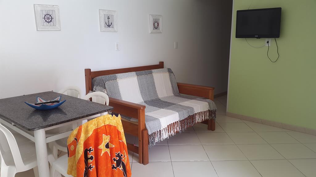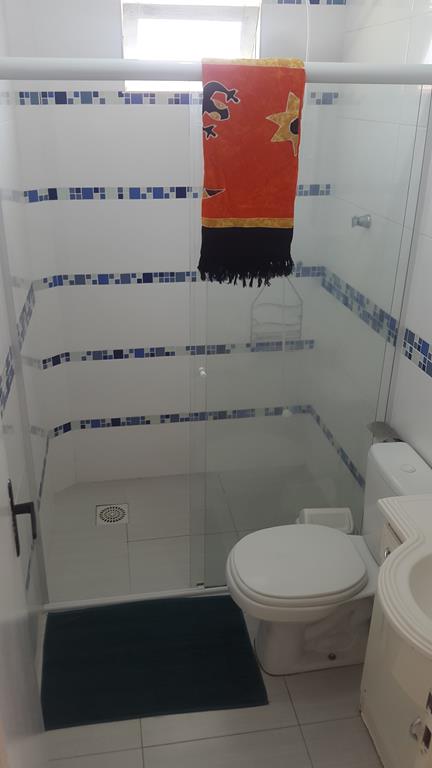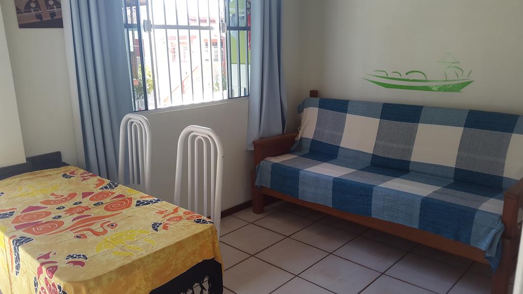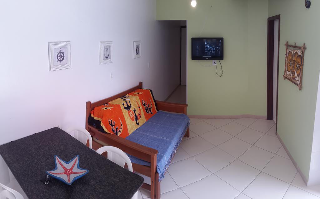 Apartamento 01 – no térreo , com 02 quartos de casais com ar, sendo, (um também com beliche), sinal de internet wireless, sala e cozinha conjugada, banheiro, ducha externa, estacionamento em pátio fechado, a 80 metros do mar em ambiente tranquilo, familiar e próximo de todo o comércio local.